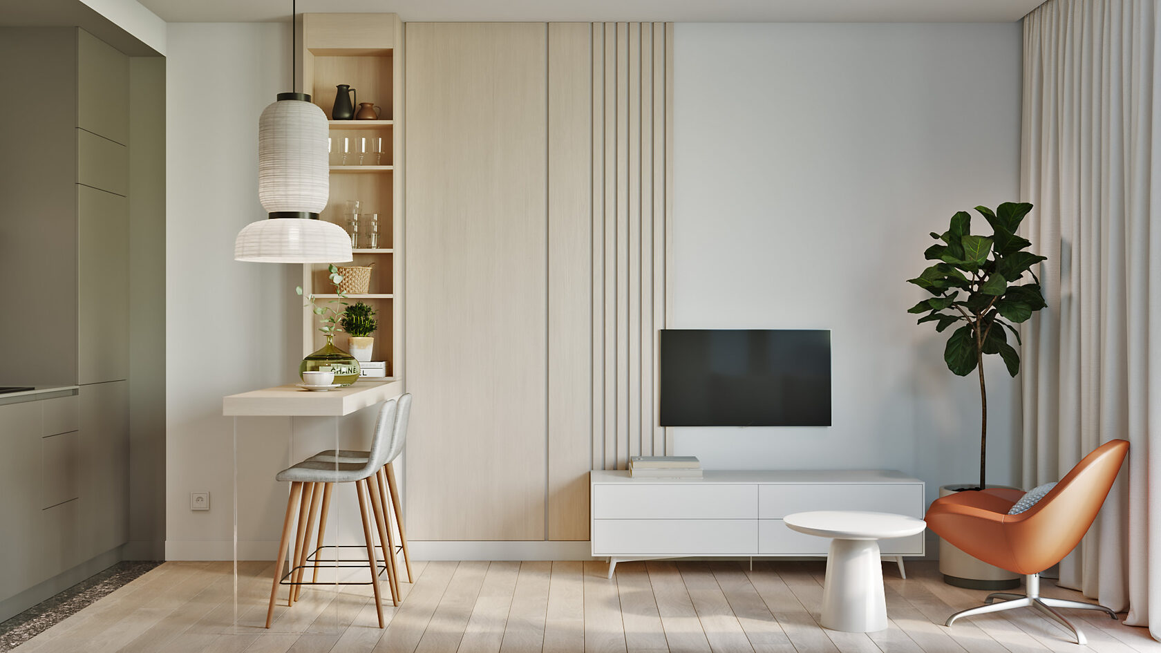 Aménagement petit salon avec cuisine ouverte : simplicité, minimalisme et fonctionnalité